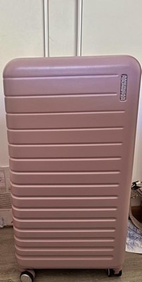 [This review was collected as part of a promotion.] I’m so excited about this American Tourister Getaway Trunk! The color is a pretty pastel pink (also comes in black). It’s a hard shell and has tons of room on the inside. The wheels and handle are very smooth. I highly recommend! 👍🏼