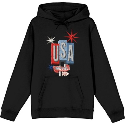American USA Flag Letters Black Adult Long Sleeve Hoodie-Medium