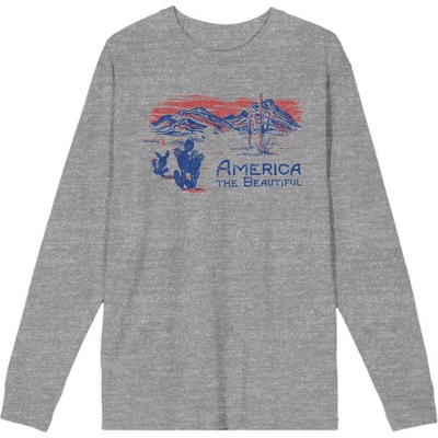 Americana America The Beautiful Adult Heather Gray Crew Neck Long Sleeve Tee-Small