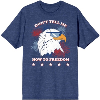 Celebrate the land of the free with this Americana tee. The shirt features white letters that spell out, ""Freedom," while colorful stars appear below the text. The tee comes in a blue fog short sleeve crew neck. Show some love for the red, white, and blue with this comfy t-shirt.