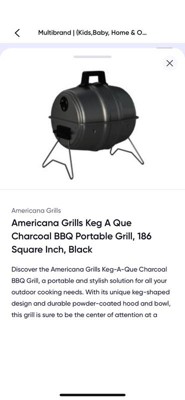 Americana Grills Keg A Que Charcoal BBQ Grill, Portable Outdoor Barbecue with Durable Powder Coated Hood and Bowl, 186 Square Inch Cooking Area, Black