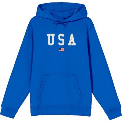 Americana USA Flag Long Sleeve Adult Hooded Sweatshirt-Large-Blue