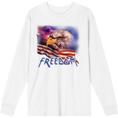 Americana USA Freedom Is Calling White Adult Crew Neck Long Sleeve Tee-Large