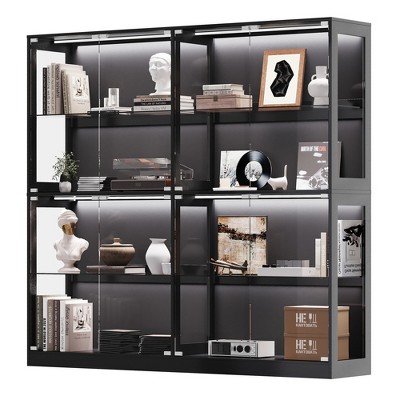 AMERLIFE 18x14" Display Cabinet with Glass Doors, RGB Lights, 4-Tier Storage, Adjustable Shelves, MDF & Tempered Glass, Black