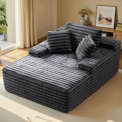 AMERLIFE 67" Chaise Lounge Sofa, No-Assembly Faux Fur Sleeper for Living Room or Apartment, Cream White