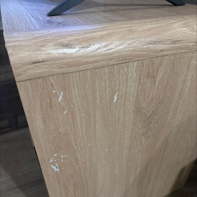 Not sure if anyone else had this issue but the warning label sticker is huge and plastered right on the side. When I peeled the sticker off, it took off some of the finish. Beautiful TV stand overall but this was disappointing…