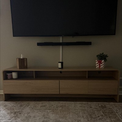 Built for stability and long-term comfort, this entertainment unit uses reinforced wood construction to support daily use without wobbling. Anti-tip hardware enhances household safety, and the flat, low-profile design lets you style your living room with a clean, minimalist aesthetic.