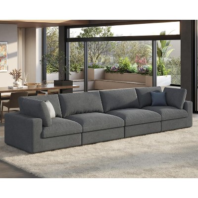 AMERLIFE 93" Double Chaise Lounge Sofa for Two, Deep Seat Cloud Couch with Lumbar Pillows & Wide Armrests, Easy Assembly, Dark Gray Faux Fur