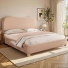 AMERLIFE Boucle Bed Frames, Upholstered Platform Bed with Curved Shaped Headboard, Cream