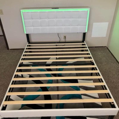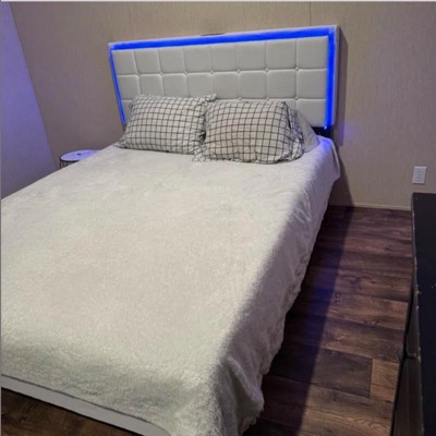 [This review was collected as part of a promotion.] We are in love with this tufted Queen size bed. The adjustable strip lighting on the headboard makes it ultra modern. It was super easy to put together and is best assembled with two people. The velcro on the slats and headboard is genius. We went for the white color but there is also a light grey option and a full and king size. It has a remote control and a handy built in charging station. I received an incentive to write this review.
