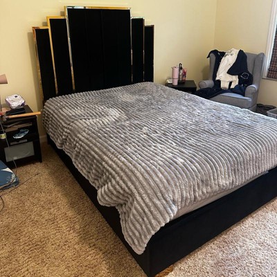 [This review was collected as part of a promotion.] This is a low profile bed frame which is perfect for our Boston terrier who doesn’t love to jump up onto a big tall bed. This frame easily elevates your space and is very nice. The frame has a plush velvet black panels and is velvet around all sides with the gold throughout which is very on trend right now. The slats and frame together are very sturdy when put together and it is a really nice frame. I received an incentive to write this review.