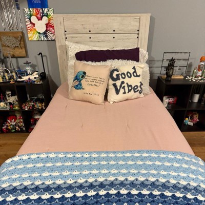 Farmhouse style white and grey twin bed frame