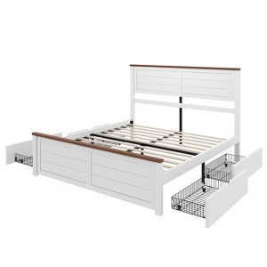 AMERLIFE Bed Frame with Headboard, Platform Beds with 4 Storage Drawers