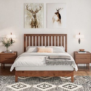 AMERLIFE Solid Wood Bed Frame: Elevate your sleep with this robust bed frame, crafted from premium pine wood for durability and quiet comfort. The distinctive grille headboard and natural oil-rubbed finish add a touch of mid-century style to any room. Enjoy 7 inches of underbed clearance for storage, and the convenience of no box spring needed. Assembly is straightforward with clear instructions and no special tools required. The oil-rubbed finish is easy to maintain, ensuring lasting beauty. Choose AMERLIFE for a blend of timeless design, practicality, and restful nights.