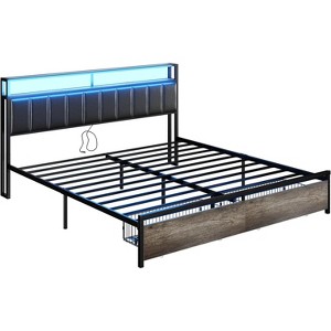 AMERLIFE LED Bed Frame with Drawers, 2-Tier Storage and Charging Station