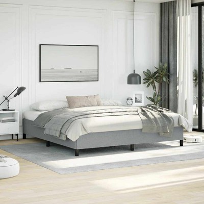 AMERLIFE King Size Bed Frame with 49" Wingback Upholstered Headboard, Steel Frame with Slip-Resistant Edges, Noise-Free, No Box Spring Needed