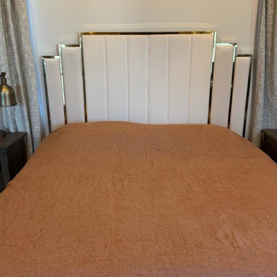 - Luxurious Design: The king-size bed features a soft velvet upholstered headboard with 65.4" vertical channels, framed by shiny electroplated gold metal for a contemporary and elegant look. The black and gold combination adds a glamorous touch to your bedroom