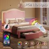 - Girls Bed: This bed frame features cute unique shape and soft velvet upholstered headboard, built-in RGB LED lights bring more ambiance to your night.