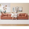 Experience cloud-like comfort with this spacious modular sofa, featuring 70% down-filled cushions that gently contour to your body for breathable, all-day coziness. Its puzzle-like design lets you mix and match sections to suit your space perfectly. Wrapped in durable, pet-friendly Leathaire that's waterproof and easy to clean, it blends style with function. A 30″ deep seat, resilient feather filling, and a sturdy wooden frame ensure both luxury and lasting performance.
