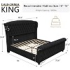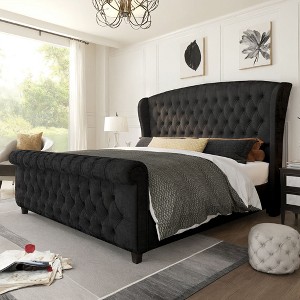 Indulge in luxury and comfort with the AMERLIFE California King Size Velvet Upholstered Platform Sleigh Bed. Crafted with exquisite buttoned detailing and a sophisticated rolled headboard and footboard, this elegant bed frame effortlessly complements a variety of décor styles. Upholstered in plush chenille fabric, it features generous foam padding for a soft and inviting touch—perfect for lounging or unwinding before sleep. Handmade by skilled artisans, this platform bed offers both timeless design and thoughtful craftsmanship. Supporting up to 1,000 lbs, it's built for durability and stability. Experience premium comfort and style in one extraordinary sleigh bed.