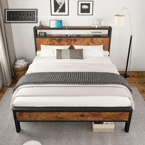 AMERLIFE Platform Bed Frame with Charging Station Storage Headboard, Noise-Free