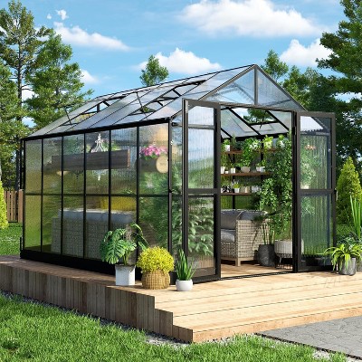 AMERLIFE Polycarbonate Greenhouse, Quick-Connect Frame, 4 Vents, Swing Lock Door