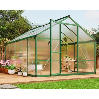 AMERLIFE Polycarbonate Greenhouse with Heavy-Duty Aluminum Frame, 8x12 FT, 2 Windows and Swing Doors, Outdoor Garden Greenhouse for Backyard, Black