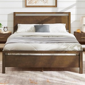 AMERLIFE Solid Wood Bed Frame with Headboard, Minimalist Platform Bed