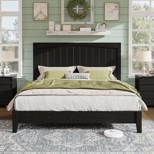 AMERLIFE Solid Wood Bed Frame, Mid Century Platform Bed with Arched Lines Headboard