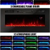 • 36 inches modern wide electric fireplace features 3 changeable realistic flame color& 5 levels dimmer, temperature control and timer setting. Max 4,800 Btu powerful output heat a room up to 400 sq. ft. Remote control included