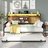 Transform your living space with AMERLIFE thoughtfully designed daybed, blending style, functionality, and convenience. Crafted with a sleek black metal frame and reinforced legs, this daybed ensures superior durability and stability, supporting up to 402 lbs. The farmhouse-inspired headboard features sliding doors that reveal hidden storage, offering a charming aesthetic with practical organization for personal belongings.