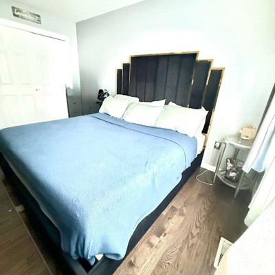 - Luxurious Design: The king-size bed features a soft velvet upholstered headboard with 65.4" vertical channels, framed by shiny electroplated gold metal for a contemporary and elegant look. The black and gold combination adds a glamorous touch to your bedroom