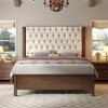 AMERLIFE Queen Upholstered Platform Bed Frame with Wingback Headboard, Solid Wood Support, Dark Walnut