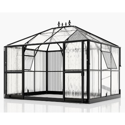 AMERLIFE Walk-In Tunnel Greenhouse with Watering System, 2 Zipper Rolling Doors, Heavy-Duty Galvanized Steel Frame, 14 Windows, 34x10x7 FT