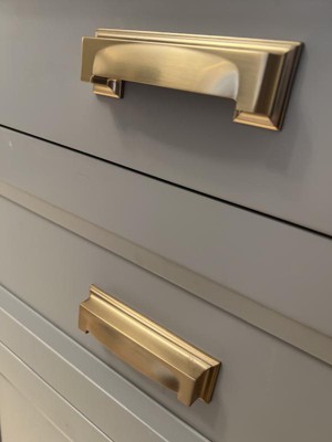 Revitalize your living spaces effortlessly with cup pulls from Amerock, a hallmark of quality from a trusted brand. Offering versatility across cabinets, drawers, and furniture applications, a cup pull is the perfect solution whether you're looking to update your kitchen or bath with new hardware or refurbish a beloved furniture piece. Amerock's commitment to excellence ensures that every pull is meticulously crafted for enduring style and functionality. Determine your cabinet hardware size using the "center to center" measurement, representing the distance between the mounting hardware or screws. Keep in mind that the overall length is greater. Streamlining your home improvement project, Amerock ensures convenience by including installation hardware with all their products. Elevate your interiors with the timeless appeal of Amerock, where superior craftsmanship meets a wide variety of applications, promising a seamless fusion of style and practicality.