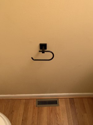[This review was collected as part of a promotion.] We bought a new house and our downstairs half bath has all oil rubbed bronze fixtures. Except for the gross, rusted, silver freestanding toilet paper holder that the previous homeowners left. I was so excited to find this simple, minimalistic TP holder that matches perfectly and finishes our bathroom perfectly! It took less then 10 mins to install and looks amazing.
