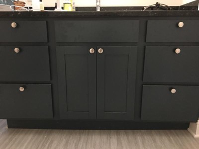 - Complete the look with matching cabinet knobs, drawer pulls and bath hardware from the Amerock Blackrock collection