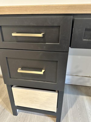 - Complete the look with matching cabinet knobs, drawer pulls and bath hardware from the Amerock Blackrock collection