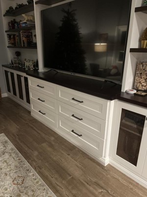 These pulls (with the accompanying square knobs) completely transformed my cabinets to a cleaner, more updated look! They are well made and look great!