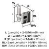 Dimensions (Overall): 2.69 inches (L), .62 inches (W), 2.69 inches thick