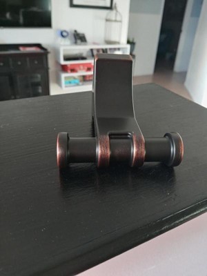 [This review was collected as part of a promotion.] I really like the quality of this single robe hook. It's heavy duty and has a beautiful oil rubbed bronze color. This matches so well with other fixtures in my bathroom. IT fits nicely behind the bathroom door. Perfect to hang my gown, robe ,or anything you want to hang out of the way. The way it's designed I can hang something across or use it at each end to hang separate items. Very happy with this fixture from the quality, made to last durability to the beautiful bronze finish.