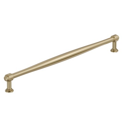 The Amerock Enlivity appliance pull offers a graceful balance of form and function with its elongated, tapering profile and finely detailed mounting posts. Its sleek, spindle-inspired design gently widens at the center and narrows at the ends, creating a sense of refined movement. Subtle ring accents and stepped bases add architectural depth, giving it a classic-meets-contemporary aesthetic. Designed specifically for larger panels and oversized cabinets, this pull delivers both style and stability to statement-making spaces.