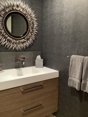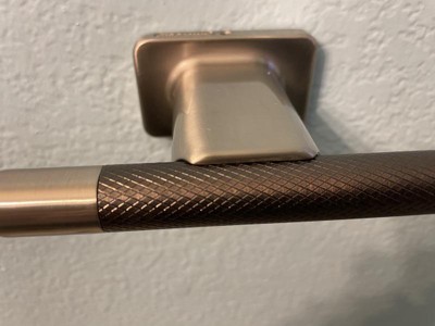 [This review was collected as part of a promotion.] Amerock decorative hardware has always been my choice for high quality knob and pull cabinet hardware. The Esquire polished nickel/gunmetal towel bar coordinates with the Esquire hardware on my bathroom cabinets and is absolutely stunning! Beautiful finish, modern design that I simply love and highly can recommend.