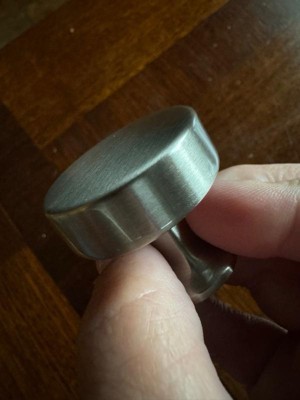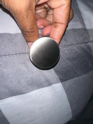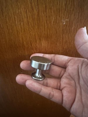 [This review was collected as part of a promotion.] Amerock Everett 1-5/16 diameter knob in saying in satin nickel is a great knob. I received it as a sample in return for an honest review. It was easy to install, works great on the garage cupboard I tested it on. Now being put on a busy board for my child.