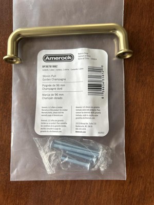 [This review was collected as part of a promotion.] The Amerock-Factor 3 3/4” (96mm) Center-to-Center Golden Champagne Cabinet pull is a great choice for you cabinet hardware. Has nice hand feel and is the perfect size for cabinets and drawers. As a replacement it fits the standard holes from the builder hardware that was existing on my cabinets.