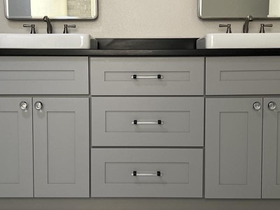 [This review was collected as part of a promotion.] We searched for cabinet hardware for a very long time. I wanted hardware that was unique, without being too demanding of your attention, and wouldn’t force us to take a second mortgage out on our home. For our gray master bath cabinetry, the Glacio line was the perfect solution. This hardware creates visual interest to otherwise boring cabinetry, yet it doesn’t present a heavy presence, thanks to the acrylic details. In my opinion here are the pros and cons: PRO: - visual interest without being overpowering - easy to clean - doesn’t show fingerprints (as I feared it might- however, it is in our bathroom.) - can be used in a variety of home decor styles - the Glacio knobs are a more economical alternative to the Glacio pulls and other unique options on the market (which is why we decided to install knobs throughout the majority of our cabinetry, with a few pulls for the drawers) CONS: - more expensive than basic hardware options - they don’t install themselves
