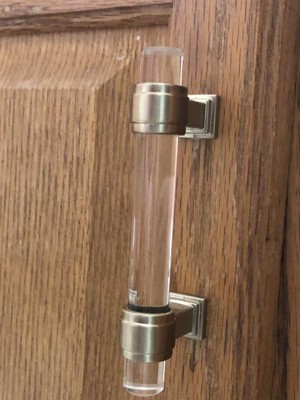 [This review was collected as part of a promotion.] I received one Glacio 3 in (76 mm) Center-to-Center Clear/Golden Champagne Cabinet Pull in exchange for my honest review. I wanted to test this out on my bathroom sink cabinet because it fits the dimensions. Unfortunately, I need another pull handle. I thought I was receiving two. Whoops. I like the look and feel of it though.