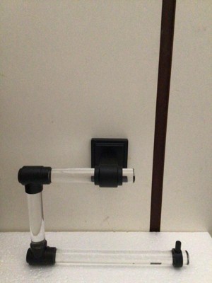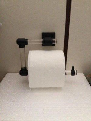 [This review was collected as part of a promotion.] This looks mostly as pictured. The install instructions are straight forward and it comes with the necessary hardware. The bottom rod that holds the toilet paper is sloped downward as if it was fixed crooked. In addition, the acrylic has small scratches that are noticeable. The toilet paper will cover these problems though. Overall, it is modern, the gold finish looks good and the clear material seems sturdy.