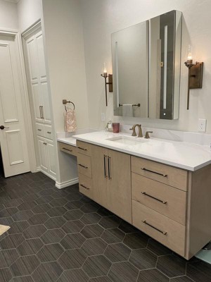 - Coordinates seamlessly with finishes from popular plumbing and lighting brands