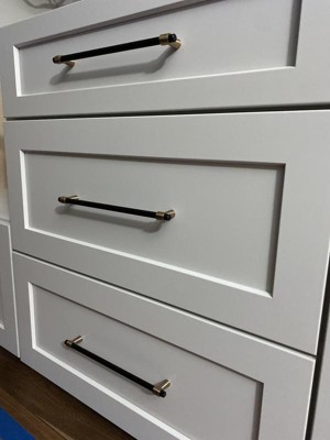 [This review was collected as part of a promotion.] This pull has a modern look that pairs well with any mixed metals design. I love the mix of champagne brass and black details. It is made of quality materials that will stand the test of time.